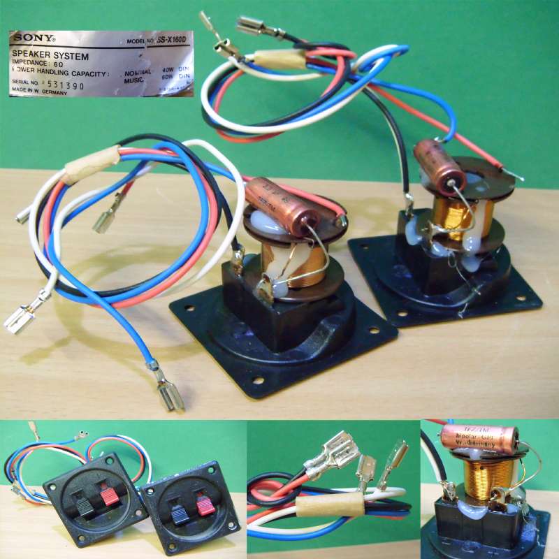 Marca: Sony Modello: SONY SS-X160D X-OVER SONY SS-X160D COPPIA X-OVER – SONY SS-X160D X-OVER Introvabile coppia di filtri crossover prodotti dalla SONY e montati sui diffusori SS-X160D In ottimo stato, sono completi di condensatore e bobina, fissati sulla parte posteriore della vaschetta contatti in plastica nera di forma quadrata con scritta INPUT e con gli attacchi a molla rosso e nero con i relativi simboli + e -, e di cavi di collegamento per gli altoparlanti con terminali faston Filtro a 2 vie con taglio intorno ai 3000 Hz, secondo le caratteristiche fornite da SONY Provengono da una coppia di casse modello SS-X160D senza altoparlanti La parte che si incassa ha un diametro di 4,5 cm circa ed è alta 5 cm mentre la flangia esterna misura 5,5x5,5 cm circa Perfetto come ricambio per diffusori o per rinnovarne l'aspetto ma anche per auto-costruttori e DIY nel settore audio Trattasi di ricambi provenienti da riciclo di materiale R.A.A.E. smontato e testato e quindi non nuovo bensì USATO verificato ed affidabile Recuperati da apparecchi demoliti per riciclo parti funzionanti Considerando le foto parte integrante dell'inserzione, vi invito ad osservare bene tutte le immagini disponibili in quanto riceverete esattamente ciò che vedete Per dirla all'inglese WYSIWYG ovvero What You See Is What You Get !! Disponibilità: Prezzo: 0,00 € per maggiori informazioni cliccare qui |