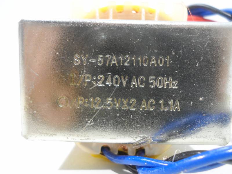 Stupendo trasformatore con il primario che può funzionare a 240 V (ROSSO-ROSSO) e doppio secondario (BLU-NERO-BLU) da 12,5+12,5 V 1,1A