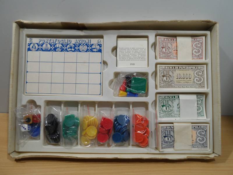 Tutte le parti “cartacee”, tabelloni compresi, sono in buone/ottime condizioni con solamente un paio di strappetti sul dorso del tabellone ed un leggero segno di piega sul tabellone della borsa