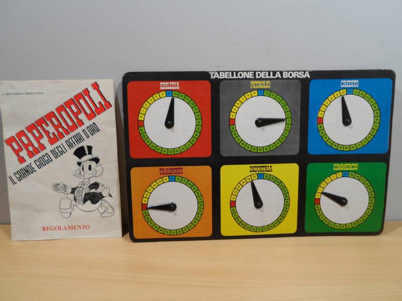 La pubblicità dell'epoca recitava : "Ecco l'ultimo, originale e impegnativo gioco che s'ispira a Paperon de' Paperoni, l'affarista per eccellenza. Paperopoli è il gioco della Borsa e degli investimenti”