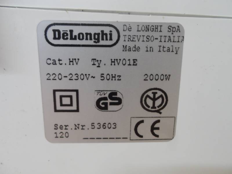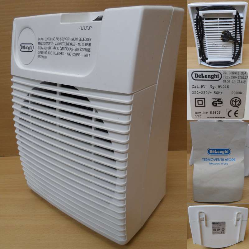 Marca: De Longhi Modello: DE LONGHI HV01E DE LONGHI HV01E TERMOVENTILATORE Utilissimo termoventilatore prodotto in ITALIA dall'azienda trevigiana DE LONGHI modello HV01E Realizzato in plastica bianca è dotato di due interruttori per accenderlo e regolarne la potenza Dall'aspetto sembra sia stato USATO poco o nulla in quanto non presenta crepe o altri difetti Completo di manuale di istruzioni, ho collegato l'apparecchio alla presa di corrente ed ho verificato che fosse FUNZIONANTE su entrambe le posizioni disponibili Funziona a 220-230V con una potenza di 1000-2000W Misura 19 x 25,5 x 12 cm Considerando le foto parte integrante dell'inserzione, vi invito ad osservare bene tutte le immagini disponibili in quanto riceverete esattamente ciò che vedete Per dirla all'inglese WYSIWYG ovvero What You See Is What You Get !!!