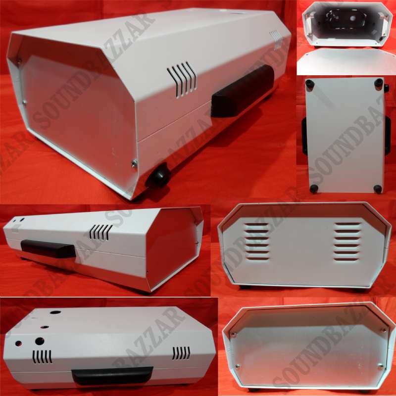 Particolare contenitore costruito in lamiera verniciata di color bianco con pannello frontale in alluminio perfetto per realizzazioni elettroniche