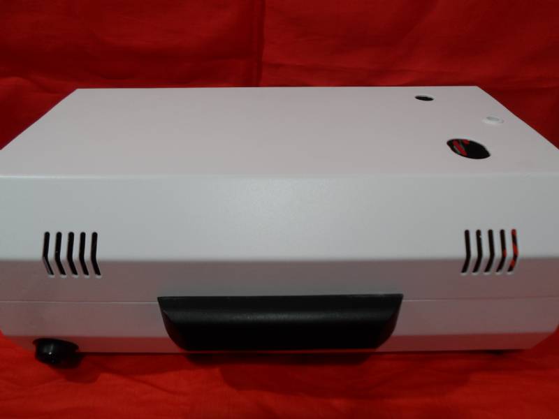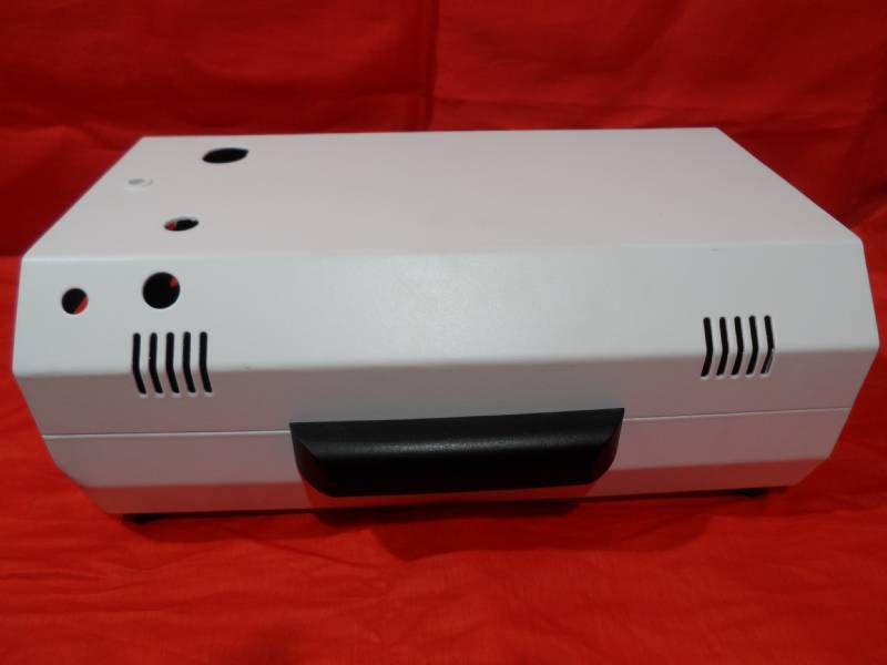 Il pannello frontale risulta integro, anche se probabilmente non originale essendo USATA, mentre sono presenti alcune feritoie sui lati e sul pannello posteriore, perfette per la circolazione dell'aria, e dei fori dovuti al precedente utilizzo (vedi foto); sono presenti anche 4 piedini rotondi in gomma ed un passacavo in plastica