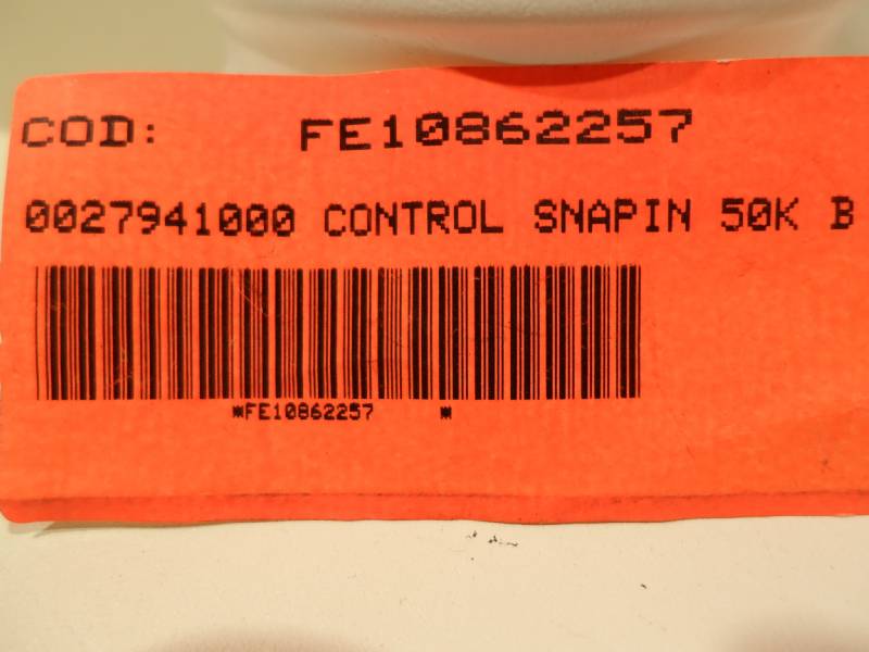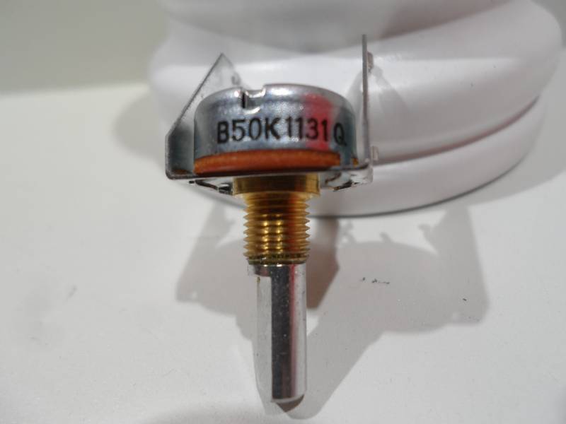Modello SNAPIN con fissaggio meccanico su board, ha un valore di 50KOhm e riporta, stampato sul dorso, i codici B50K 1131 Q mentre sul fondo è presente una T ed un logo (vedi foto)