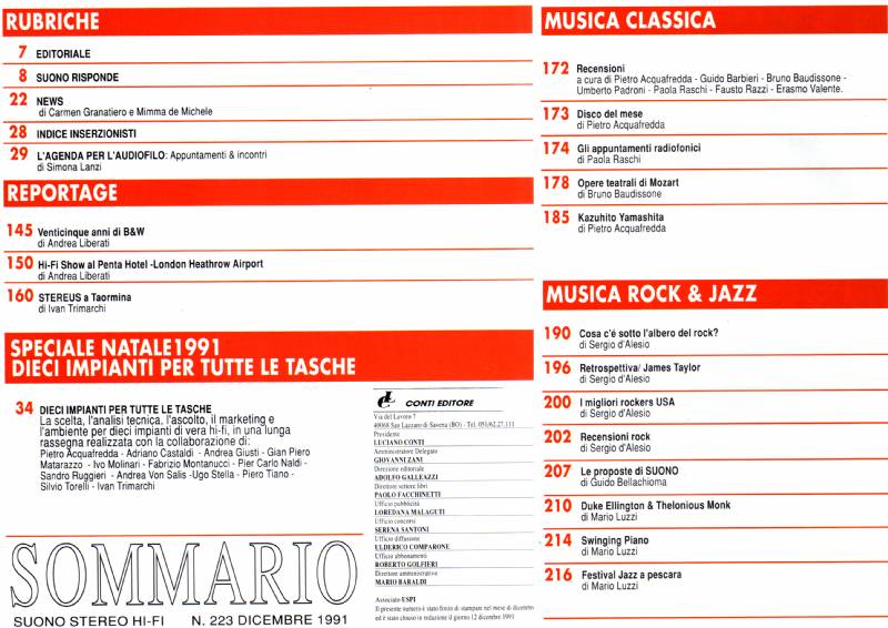 Marca: Gruppo Editoriale Suono Modello: SUONO ANNO XX NUMERO 223 DICEMBRE 1991 SUONO ANNO XX NUMERO 223 DICEMBRE 1991 ROTEL – PIONEER – ARCAM – JVC - THORENS