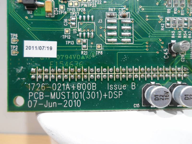 Sulla scheda sono stampati i codici 1726-021A+000B IssueB PCB-MUST101(301)+DSP e la data 07 Jun 2010 mentre su due etichette sono presenti i codici MUST1/2 V1.7.4 e la data 2011/07/19