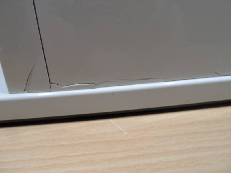 Manca invece il tappo laterale e la pala miscelatrice all'interno; sono anche presenti alcune crepe sulla parte inferiore della plastica esterna ma che non incidono sul funzionamento dell'apparecchio