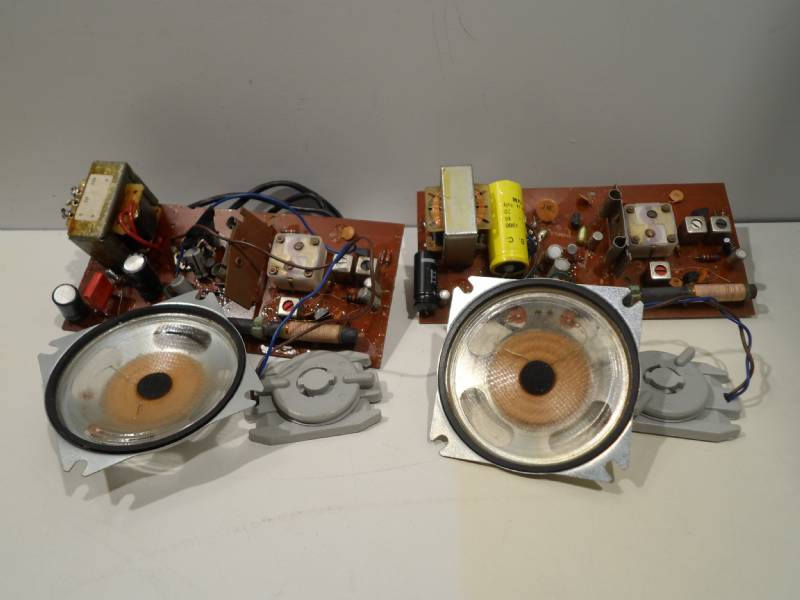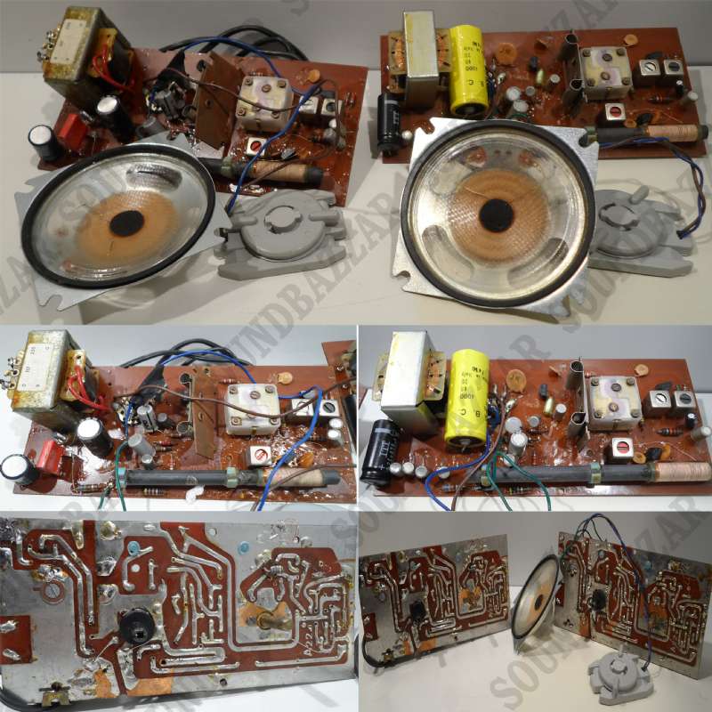 Ritengo che possono essere recuperati diversi componenti elettronici (ho letto alcune sigle come OC76, BF195, BF194) da utilizzare come ricambi per hobbysti e/o riparatori di vecchi apparecchi a transistor, oltre che i due altoparlanti e i due trasformatori di alimentazione per cui li metto in vendita PER PARTI DI RICAMBIO
