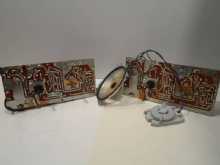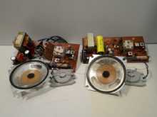 Particolare coppia di schede elettroniche di ricevitori radio complete di trasformatore e altoparlante