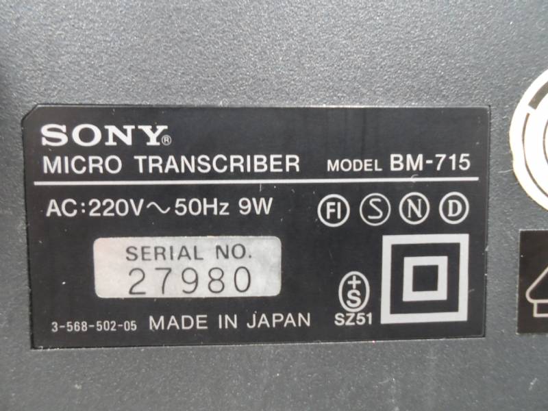 Particolare esemplare di dittafono a mini cassette modello BM-715 prodotto da SONY in Giappone
