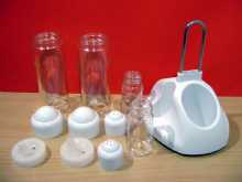Il set completo misura 17 x 13,5 x 18 cm circa; le ampolle olio-aceto sono alte 17 cm e diametro 5,2 cm mentre le ampolle sale-pepe sono alte 9,5 cm e diametro 3,5 cm