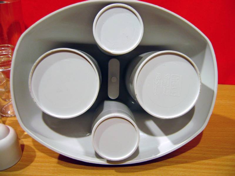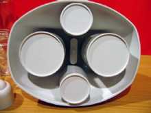 L'esemplare in vendita si presenta in buone/ottime condizioni, come fosse stato USATO pochissimo, la plastica non ha alcuna crepa (solamente qualche segnetto del tempo), è liscia, brillante come anche le 4 ampolle (olio, aceto, sale e pepe)