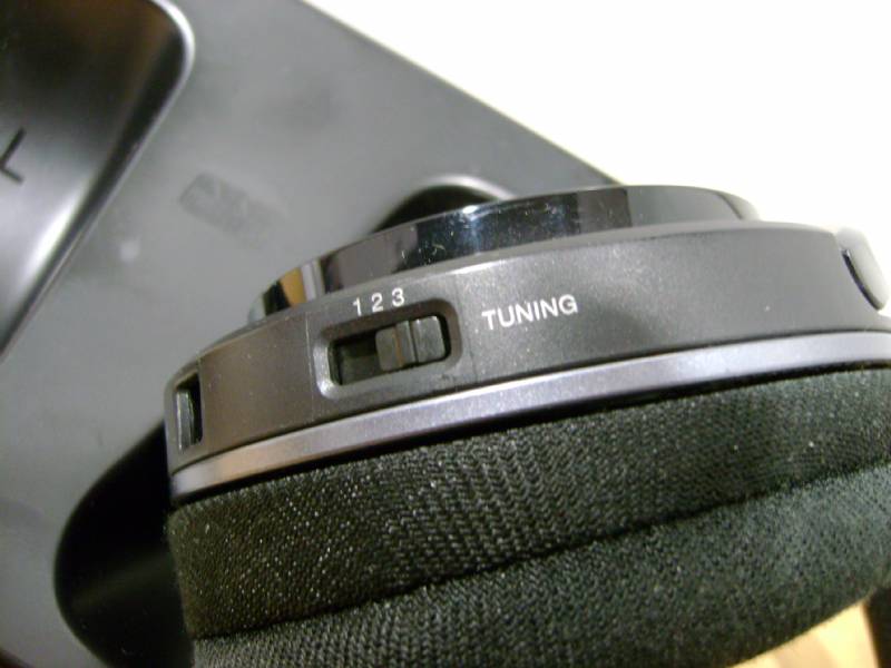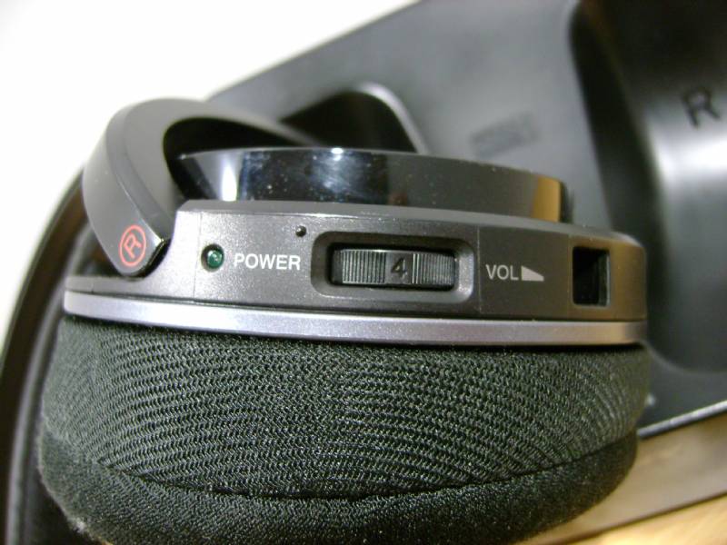 Sulla cuffia, lato destro, sono presenti il potenziometro del volume, il commutatore per i canali e il led di accensione mentre sull'altro auricolare è presente il vano batterie